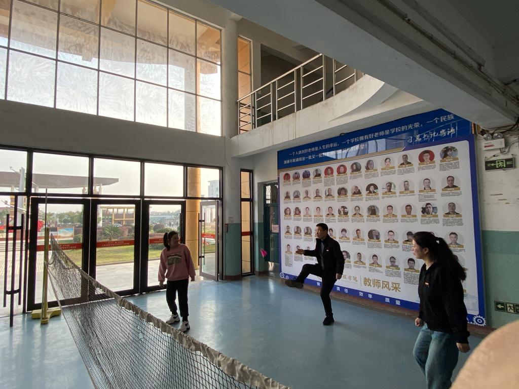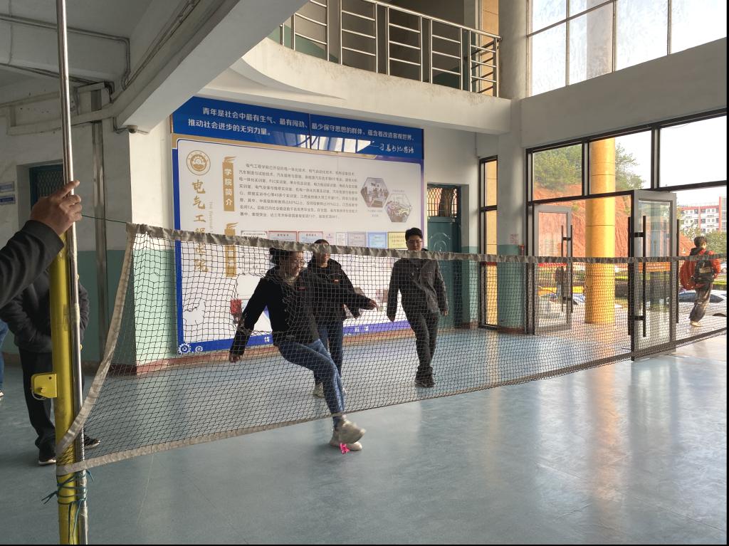 2023年11月14日下午16时,在四教一楼大厅,电气工程学院举办了一场毽球比赛,全体教职工参加了比赛。