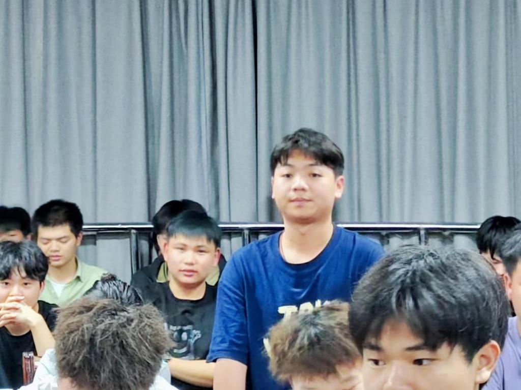 黄锦文讲话。他对学生干部的工作表示肯定。他要求同学们,要勤学苦练,成为栋梁之才;磨砺坚强意志,昂首挺胸面对就业;锐意进取,开拓创新,为建设良好的班风班貌努力工作。