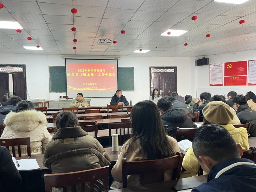 2月13日上午,电气工程学院在明辨楼312召开学生工作专题会,布置新学期开学工作,开展节后收心教育。分院院长黄锦文出席,全体班主任、辅导员参加,谭永峰老师主持。