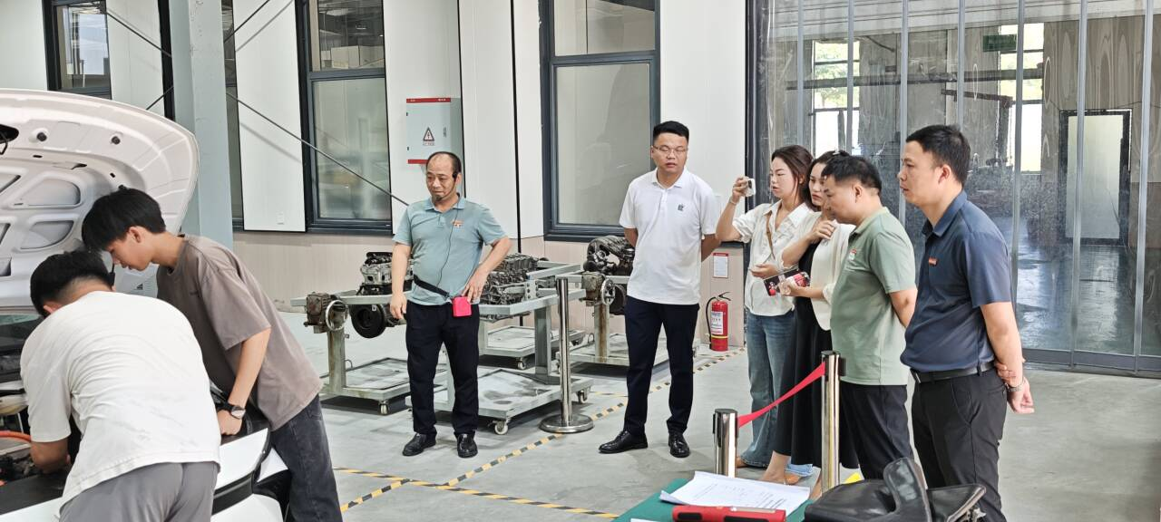 会后,双方一同到分院汽车实训室、江西省黄辉机电技术技能大师工作室参观交流,郑维贤一行对分院在人才培养模式、实训基地建设、建设成果等方面的给予高度评价。