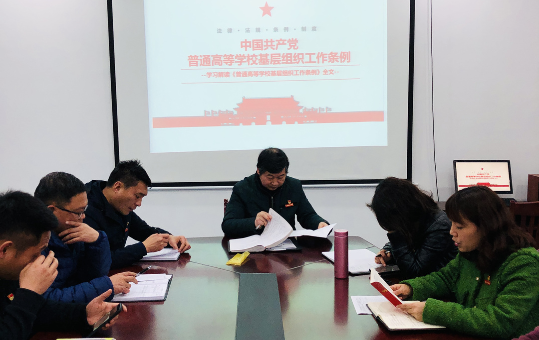最后,支部书记为大家上了一堂贯彻落实《中国共产党普通高等学校基层组织工作条例》的党课。