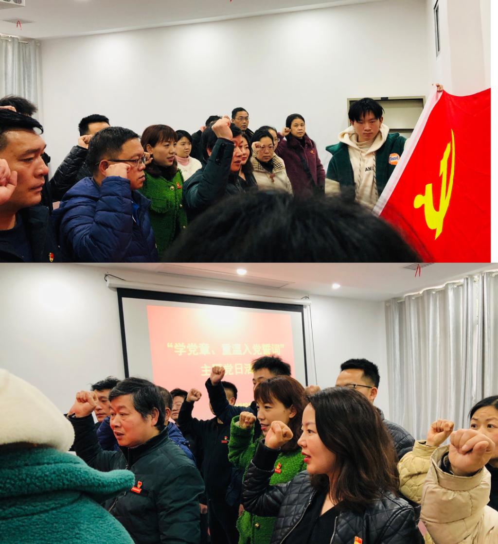 会议首先由党务干事领学了党章。学习完毕,全体党员面对党旗,庄严地高举右拳,庄严宣誓,重温自己对党忠诚的誓言。最后,会议进行主题研讨,重点研讨如何通过学习,进一步坚定理想信念。大家各抒己见,积极发言,并纷纷表示,要把党章作为日常行为根本准则,以党章为参照自警自省,严格执行党的决定,始终牢记作为一名共产党人的权利和义务,进一步增强组织观念。