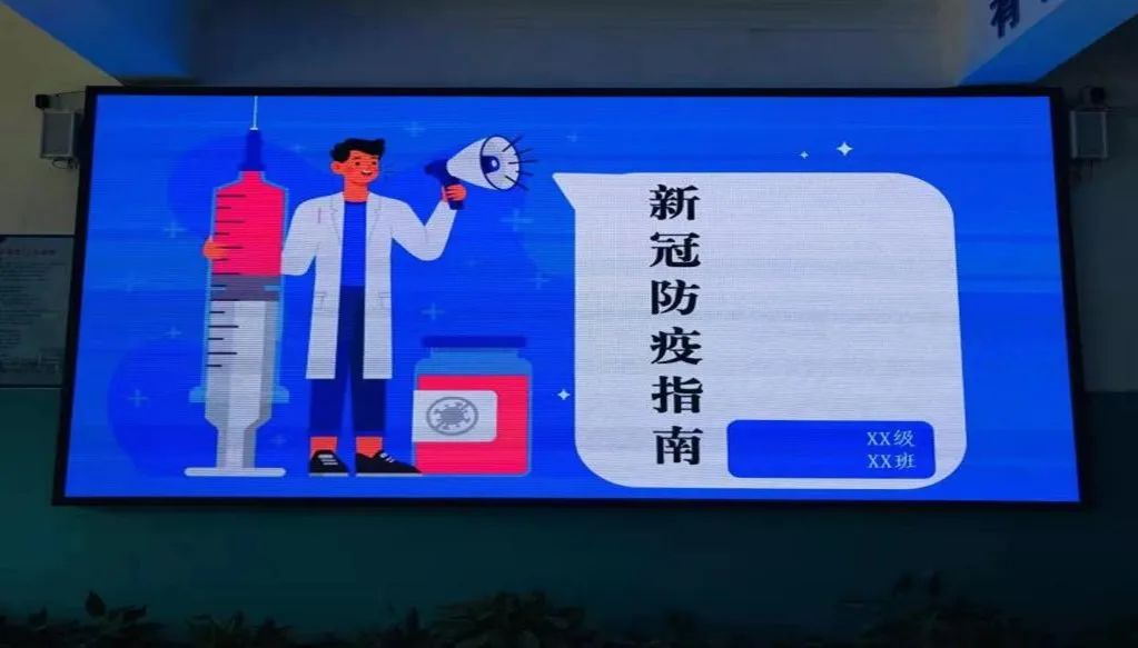 分院防疫宣传有实效。在分院一楼大厅张贴宣传标语,在LED屏幕上不间断播放防疫指南。分院布置每个班级都出刊一期防疫专题黑板报,让防疫知识进班。