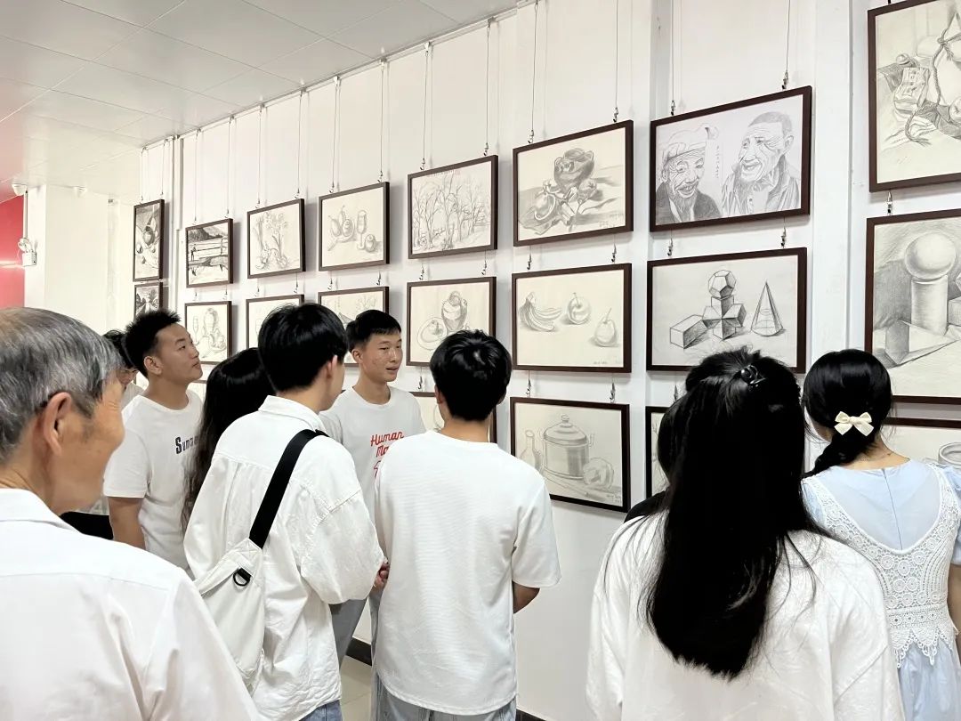 2023年6月16日,智能工程学院入党积极分子、部分学生代表及书法社成员在学校书法社王德仁老师和分院何帆老师的带领下,前往新余市老年大学参观书画作品。