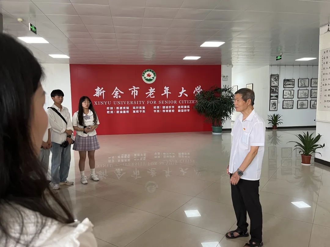 参观前,王老师向同学们讲述他十几年来在老年大学的学习经历,并且传递了终身学习的学习观念。王老师也叮嘱青年学子,在学习的道路上,勇气、骨气、信心都是必要条件。年龄并不是学习的障碍,而是坚持和热爱的动力,他们用实际行动证明了学习可以不断塑造人格,丰富生活经验,保持年轻的思维和激情。