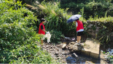 红色幽居,有着一条清泉流过,水流清澈透亮,滋养着两岸的田地,是一条守护村民们的幸福河。10名队员组成了一支“河小青”行动队,跟随村委干部,沿着河流清理两岸白色垃圾和各类生活垃圾等。志愿者们充分发挥了团结协作的精神,发现一处,清理一处,不遗余力保护珍贵的水资源。