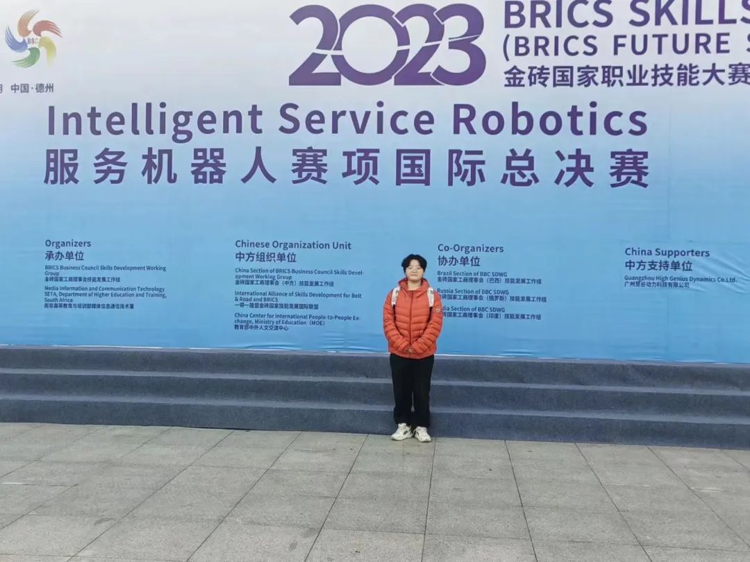 11月10—11日,由智能工程学院敖丽华老师指导的辛雅菲同学在2023金砖国家职业技能大赛国际总决赛服务机器人赛项中荣获三等奖。