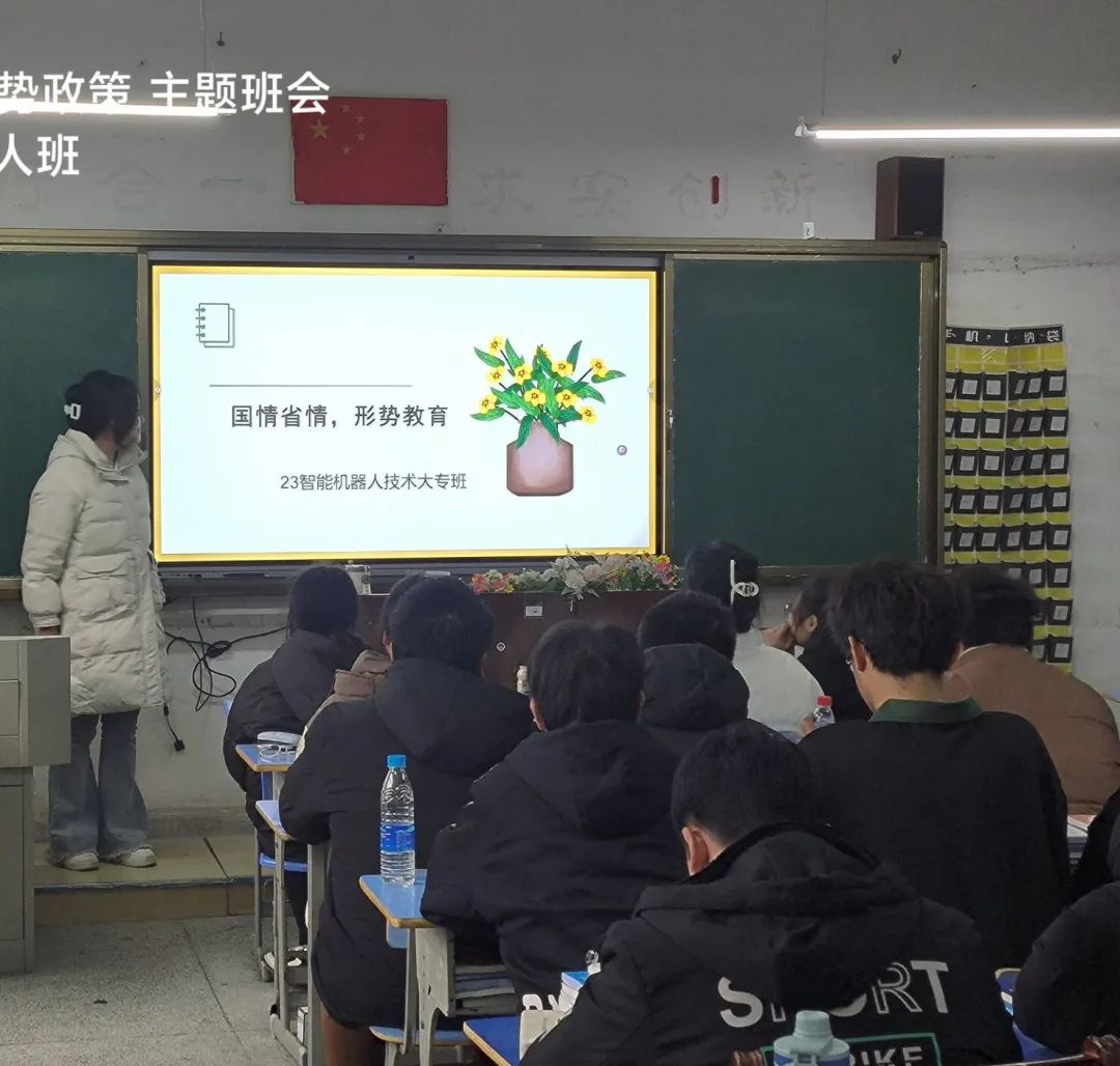 3月5日下午,智能工程学院在全院各班级召开主题班会,进行国情省情形势教育,弘扬爱国主义精神。