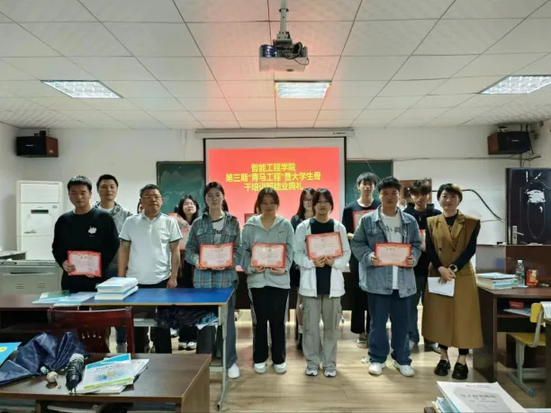 2024年4月1日,智能工程学院第三期“青马工程”暨大学生骨干培训班结业典礼在北校区第一教学楼407举行。智能工程学院副院长简金平、综合干事陈丹丹、团总支书记龚文及培训班全体成员参加了典礼。