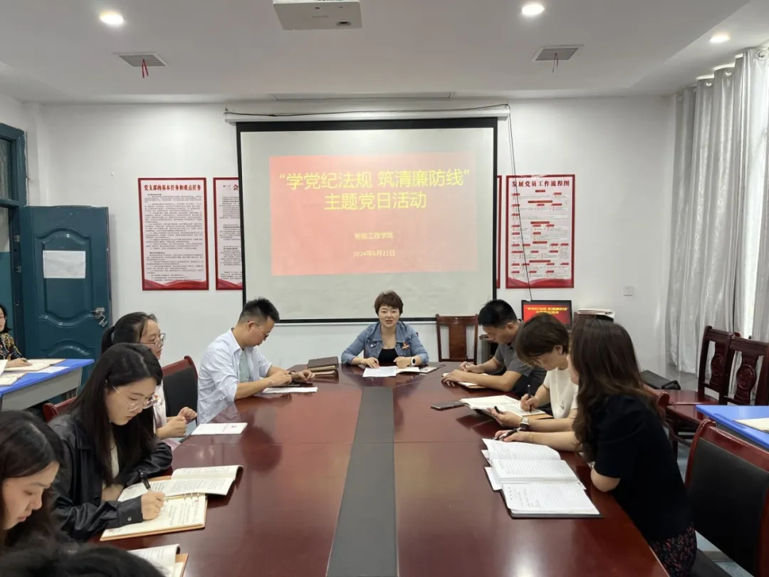 智能工程学院党支部于5月21日下午在103党员活动室召开“学党纪法规 筑清廉防线”主题党日活动。活动由分院党支部书记吴钰琳主持,全体党员参加。