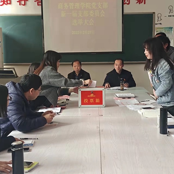 会上,唐毓林代表上届委员会向大会作了工作报告。随后,在充分酝酿新一届委员正式候选人名单的基础上,大会采取无记名投票方式进行了差额选举,产生了商务管理学院党支部新一届委员会。