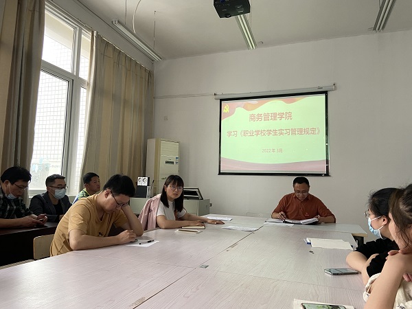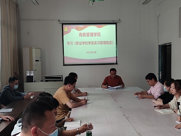 3月16日下午,在新三教208,商务管理学院召开《职业学校学生实习管理规定》专题学习会。会议由分院副院长郭斌主持。