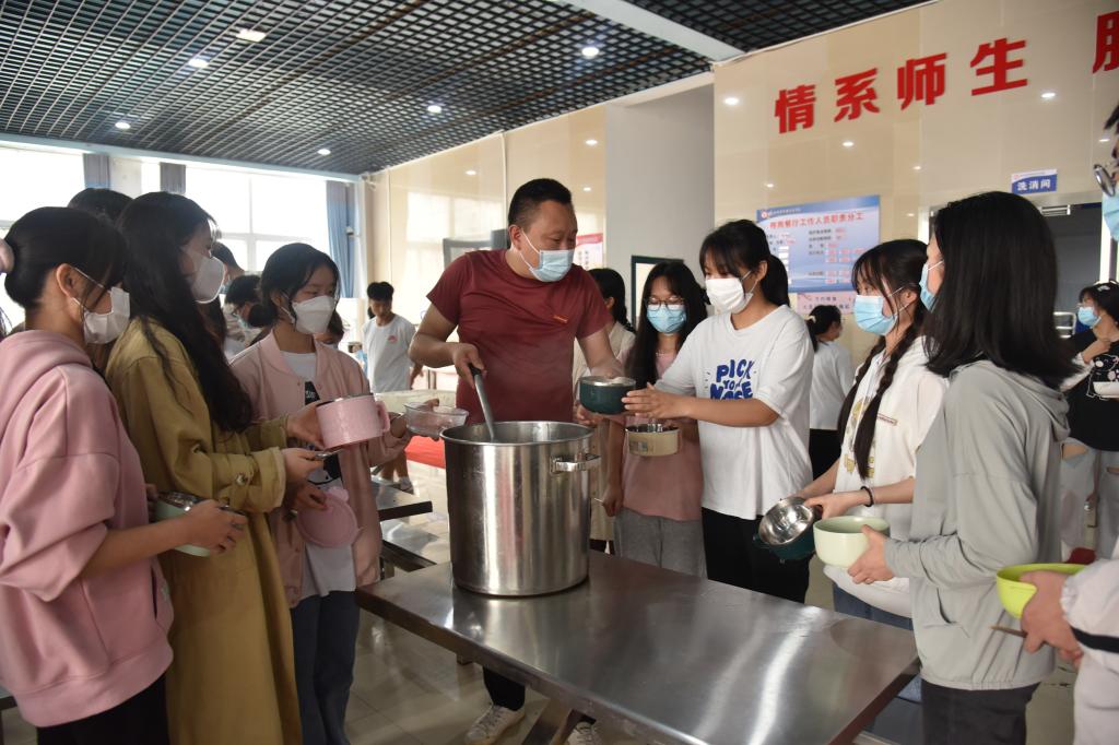 杨乐文加入到同学们的包饺子和玩游戏活动中,亲切地与学生们交谈,询问疫情期间在校生活学习等情况。他还鼓励同学们,要科学防疫,加强自我防护,增强户外体育锻炼,调节身心状态,利用好校内资源,继续保持积极昂扬的生活状态。遇到任何困难第一时间要向辅导员和老师反映,学院会积极帮助大家解决,为同学们的健康成长保驾护航。