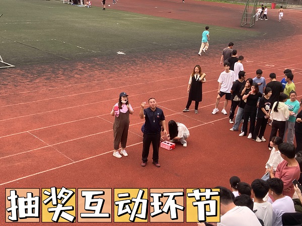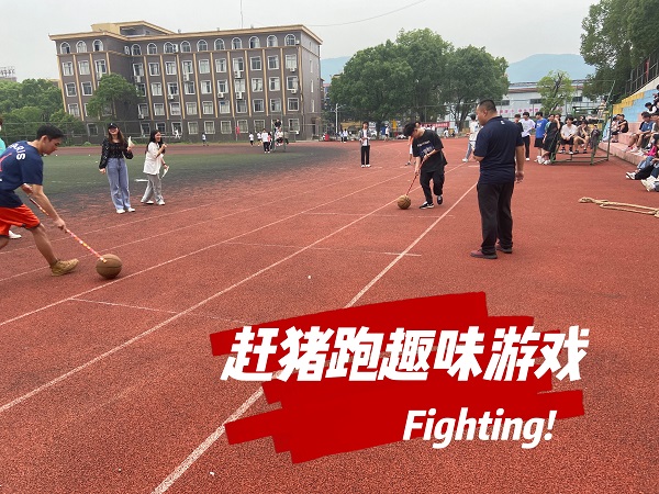 第二个项目是赶“猪”跑趣味游戏。赶“小猪”锻炼了大家的手眼协调能力、身体平衡能力,体验到游戏的快乐,感受十人一组互相默契的配合。最让人激动人心的还得是两位老师准备的抽奖环节,将比赛氛围推到了高潮。有的同学赢得了比赛胜利而高兴,也有的同学抽到了奖品而开心。秉着友谊第一、比赛第二的原则,大家都收获到了许多,正是因为同学们的凝聚力与拼搏精神,才得以让这次活动顺利的举行。