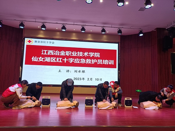 2月10日,开学第一天,学院与新余市红十字会联合举办的“开学第一课”校园救护员培训在图书馆学术报告大厅举行。学校医护人员、保卫处老师、体育老师和辅导员班主任共计55人参加了培训。学院党委委员、副院长潘山出席培训并讲话,商务管理学院承办培训。