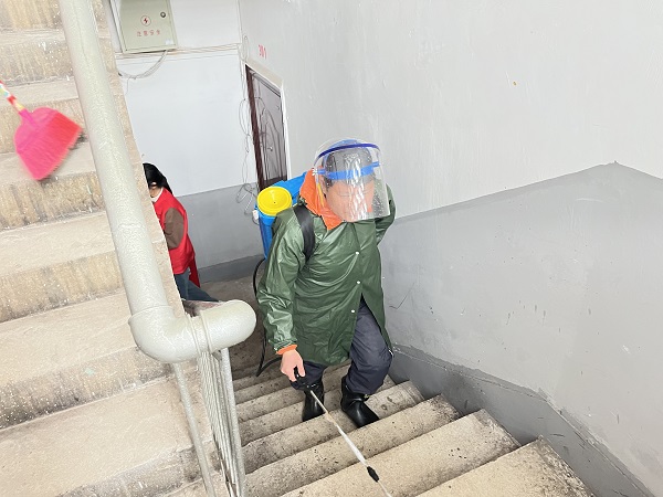 活动中,党员、入党积极分子手持扫把、钳子、抹布等各种劳动工具,不惧雨、不怕脏、不怕累,仔细对8栋家属区周边进行了清扫整理,不放过任何一个卫生死角。大家分工协作,党员老师与学生入党积极分子主动担当,有的用扫帚清扫,有的用钳子捡拾生活垃圾,清理牛皮癣小广告,有的提着垃圾袋来回搬运垃圾,用实际行动践行雷锋精神。党员张华鹏老师背着将近五十斤重的消杀药水,到各楼栋走廊楼道进行了消杀,保障了居民疫情防控安全。