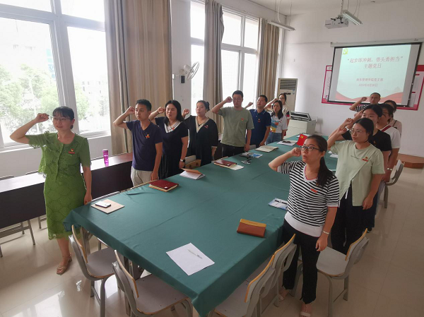 随后,举行了重温入党誓词的仪式。在陈利华带领下,大家举起右拳,面向党旗,庄严地向党组织宣誓。