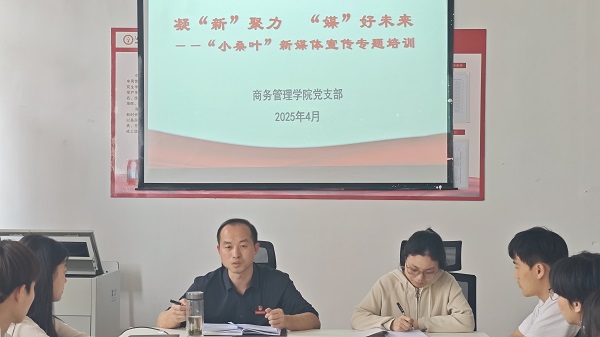 4月8日下午,在新三教208,商务管理学院“小桑叶”新媒体中心举办新媒体宣传专题培训。分院党支部书记唐毓林出席,“小桑叶”负责人丁显阳同学和学生干部参加,分院党支部宣传委员、“小桑叶”指导老师易珍琴主持。