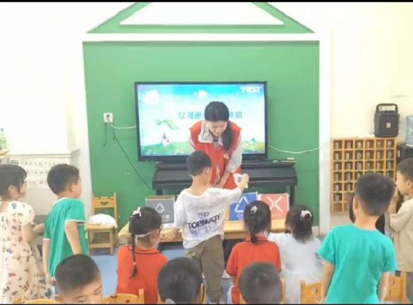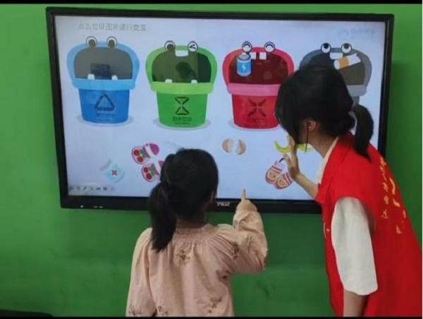 活动中,志愿者们化身“环保小老师”,通过动画课件,向小朋友们讲解垃圾分类知识。生动形象的图片、通俗易懂的语言,让孩子们听得津津有味,现场互动频繁。“老师,废旧电池是有害垃圾!”“过期的药品也要扔进有害垃圾桶!”小朋友们积极举手回答问题,展现出对垃圾分类知识的浓厚兴趣。