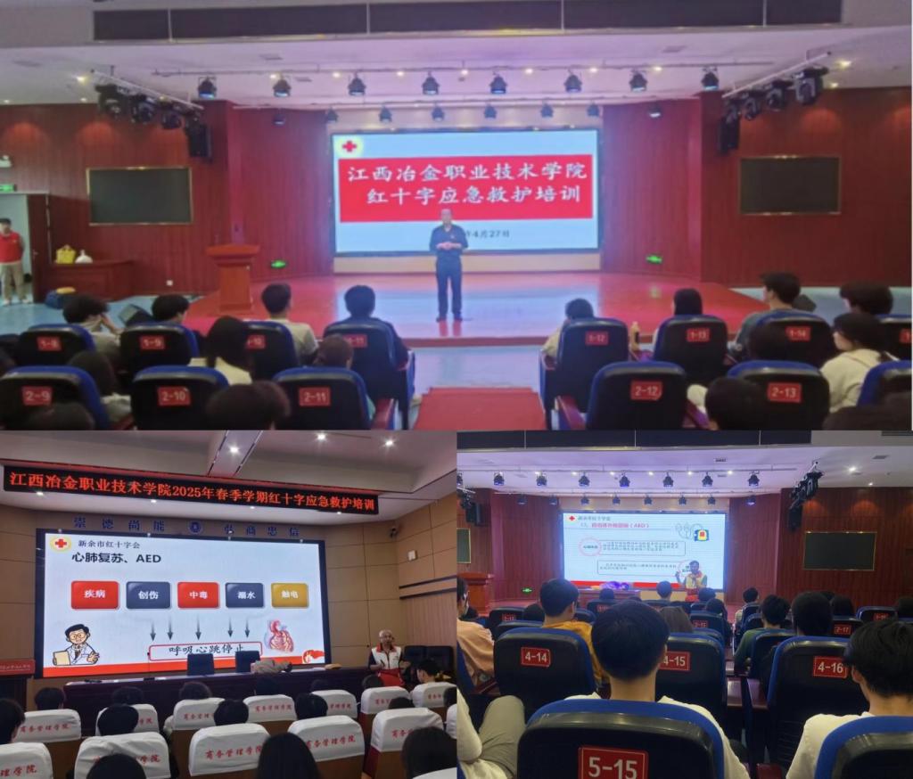 2025年4月27日,第78个“5·8”世界红十字日来临之际,在图书馆报告大厅、综合育人体验中心,学校开展了“生命教育 救在身边”主题系列活动之应急救护培训活动。活动由学校与新余市仙女湖区卫健中心(区红十字会)联合举办,学工处、商务管理学院承办,200余名师生参加培训。