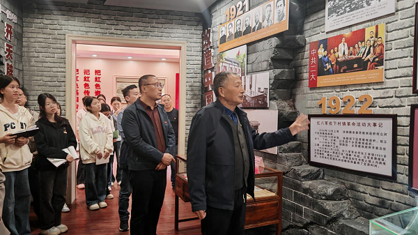 2025年10月28日,商务管理学院党支部组织全体党员、入党积极分子前往新余市渝水区下村镇党员教育基地,开展了“深学细悟全会精神 凝聚实干奋进力量”的主题党日活动。活动由党支部书记唐毓林主持。
