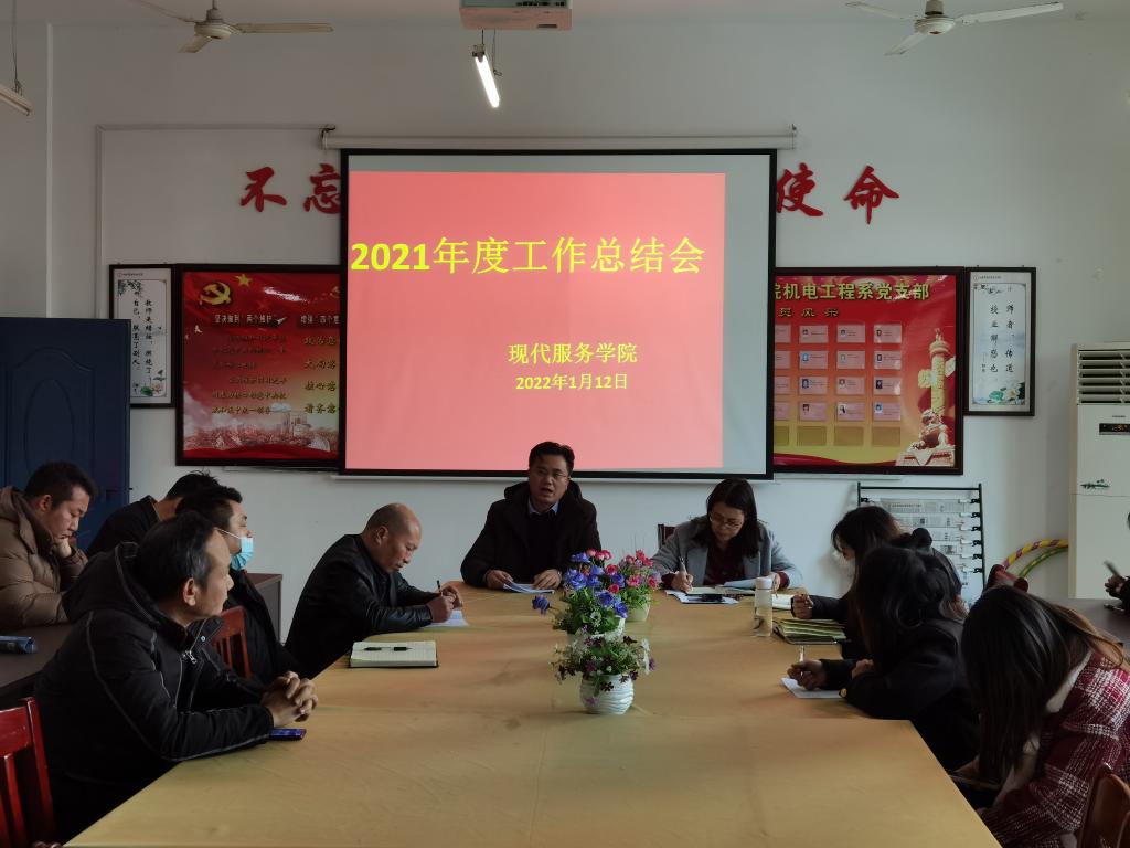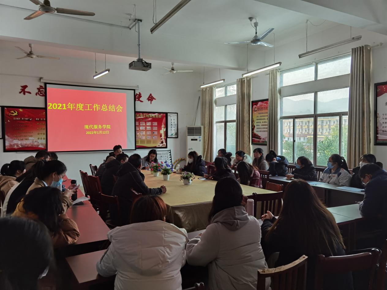 【现代服务学院周佳雪报道】2022年1月12日下午,现代服务学院组织全体教职工在老三教党员活动室召开2021年度工作总结会,会议由现代服务学院院长阮和平主持。