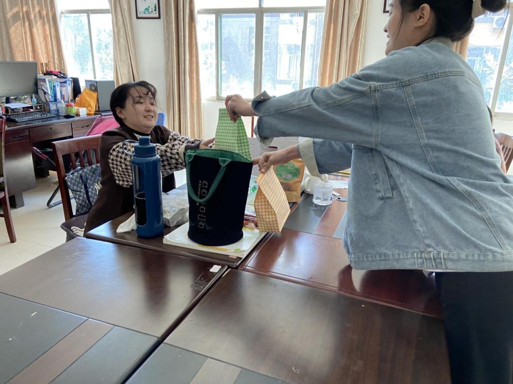 志愿者们分头行动,去到各个办公室,纷纷向老师献上精心准备的小礼物,感激老师们的辛勤付出,祝福老师们三八妇女节快乐。