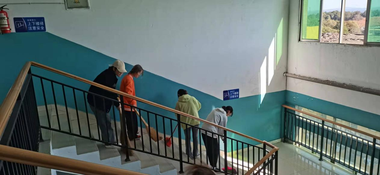 随后,志愿者们开始仔细打扫老师们的办公室及教学楼。扫地、拖地、倒垃圾、擦桌子、整理书籍和擦窗户,面面俱到,为老师们收拾出了干净整洁的办公环境,营造了舒适的工作氛围。