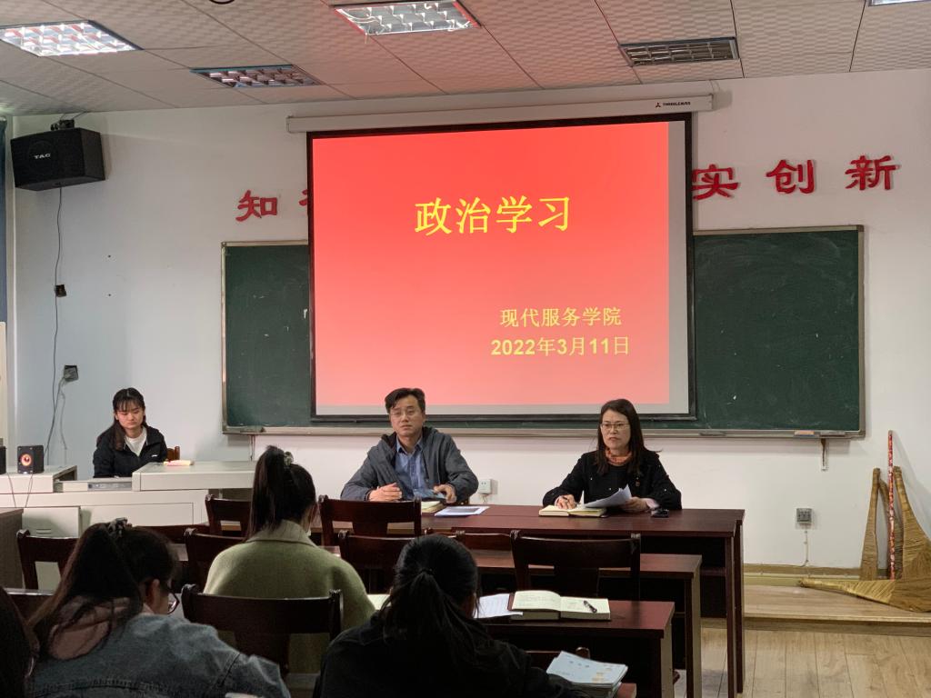 【现代服务学院徐卉报道】3月11日,现代服务学院集中开展政治学习,传达学习习近平总书记在十九届中央纪律检查委员会第六次全体会议上的重要讲话精神。会议由支部副书记欧阳小缨主持,全体教师参加。