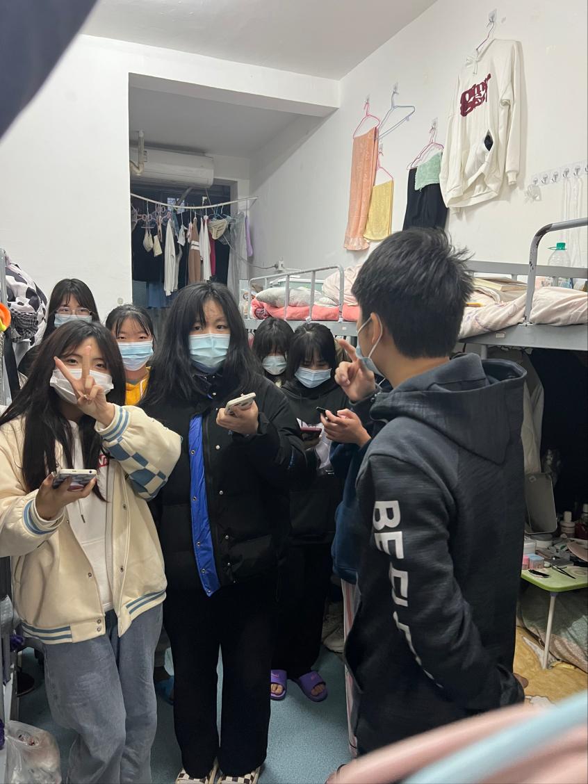 分院兼职班主任胡靖晟与辅导员徐卉就是这样一对。他们夫妻携手奋战,为了学生,日夜留守学校,将1岁的小宝宝留给家人照顾。他们每天深入宿舍,与学生交流谈心,及时解决学生学习生活困难,为他们缓解焦虑心情。从早到晚,他们的工作忙碌而充实:精准信息摸排、核酸采样组织、防疫物资发放、心理问题疏导、生活难题解决、深夜自驾送生病学生就医、处理各种突发状况等。每天忙到深夜,这是他们的防疫工作常态。与此同时,他们还将健身指导和团体心理辅导带进学生宿舍,通过开展各式各样的寝室活动,丰富学生的课余生活。夫妻俩在一起,张口闭口全是工作,全是学生。