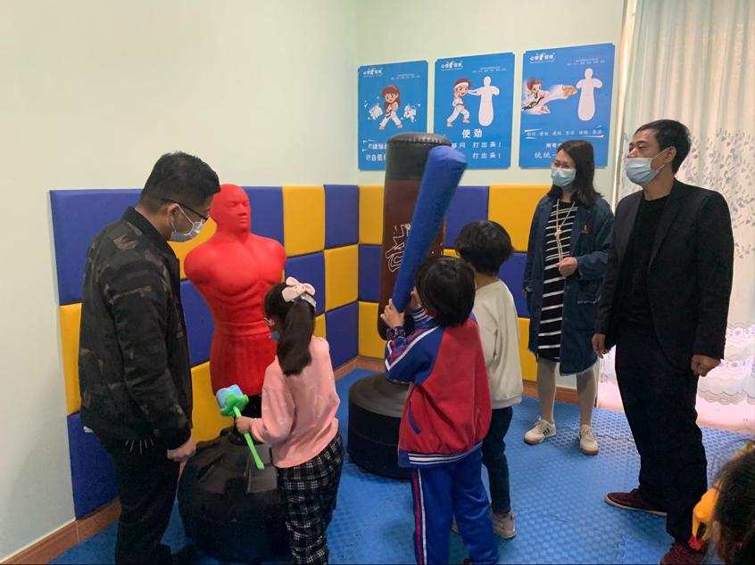 涂斌认为,关爱留守儿童是全社会的共同责任,一定要充分发挥共青团组织桥梁纽带作用,对志愿者队伍、党建宣传员等多方力量进行调动,推动工作落实。欧阳小缨认为,一定要多措并举,建设好、使用好、管理好“童心港湾”,切实增强农村留守儿童获得感、幸福感、安全感。会后,学院一行人在姚为荣的陪同下,参观了心理咨询室的建设和使用情况。