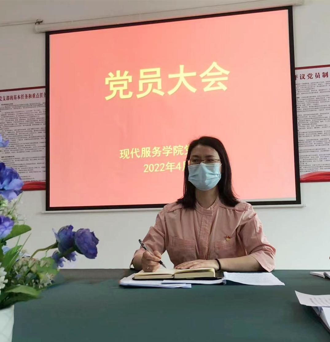 【现代服务学院学院廖斐报道】4月14日,现代服务学院党支部在三教党员活动室召开党员大会。全体党员参加了会议。会议由党支部副书记欧阳小缨主持。