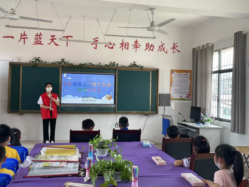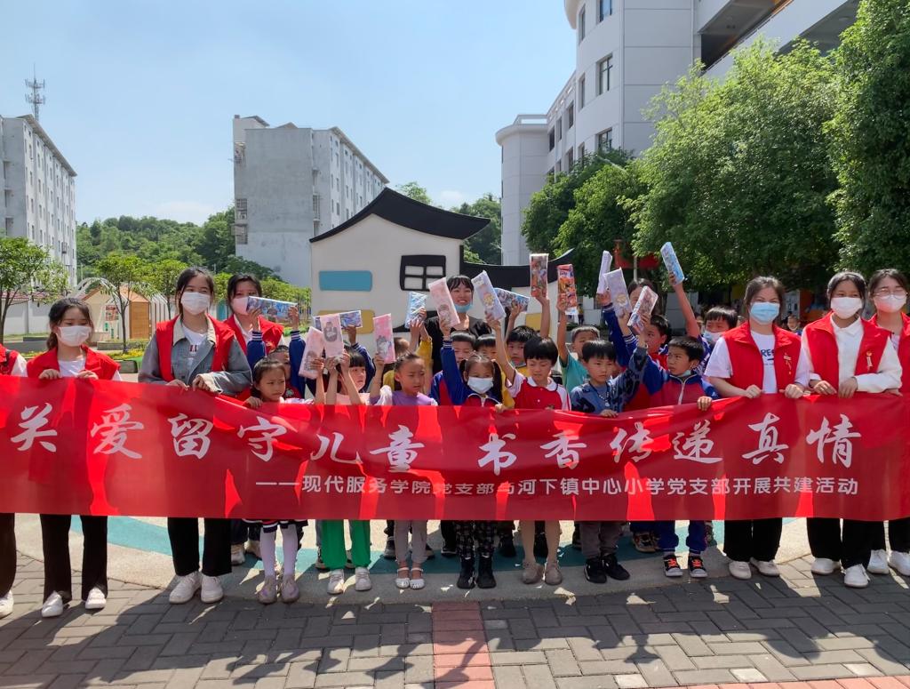 【现代服务学院徐卉报道】近日,现代服务学院党支部的青年党员们走进河下镇中心小学,与河下镇中心小学党支部的党员一起,开展了以“书香传递爱心•书香传递真情”为主题的“橙色课堂”之手拉手结对帮扶活动。该活动也是“七彩课堂”系列活动之一。