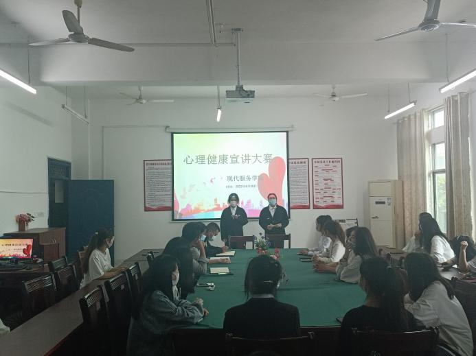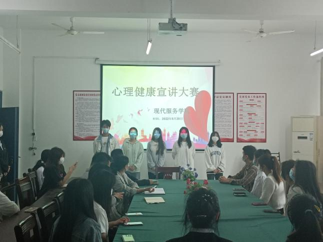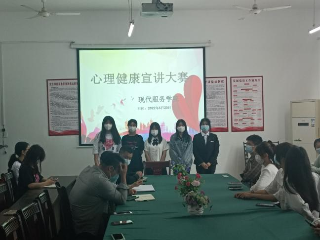【现代服务学院李思晨报道】5月20日下午,在老三教党员活动室,现代服务学院组织开展“5.25”心理健康知识宣讲比赛活动。分院党支部副书记欧阳小缨出席活动。团总支书记武凡、学生科科长林亮亮、学管干事李思晨老师、李昶志老师担任评委。各班级心理健康委员参加比赛活动。