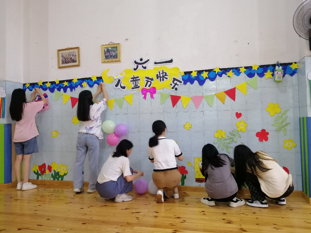 【现代服务学院袁思雅报道】5月31日,为迎接第72个国际“六一”儿童节到来,现代服务学院师生再次走进冶院托儿所,为小朋友们布置庆“六一”环境创设,陪同小朋友们玩游戏。