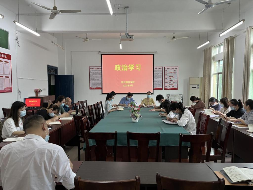 【现代服务学院廖斐报道】近日,现代服务学院在老三教党员活动室开展教职工集中政治学习,会议由党支部书记欧阳小缨主持。