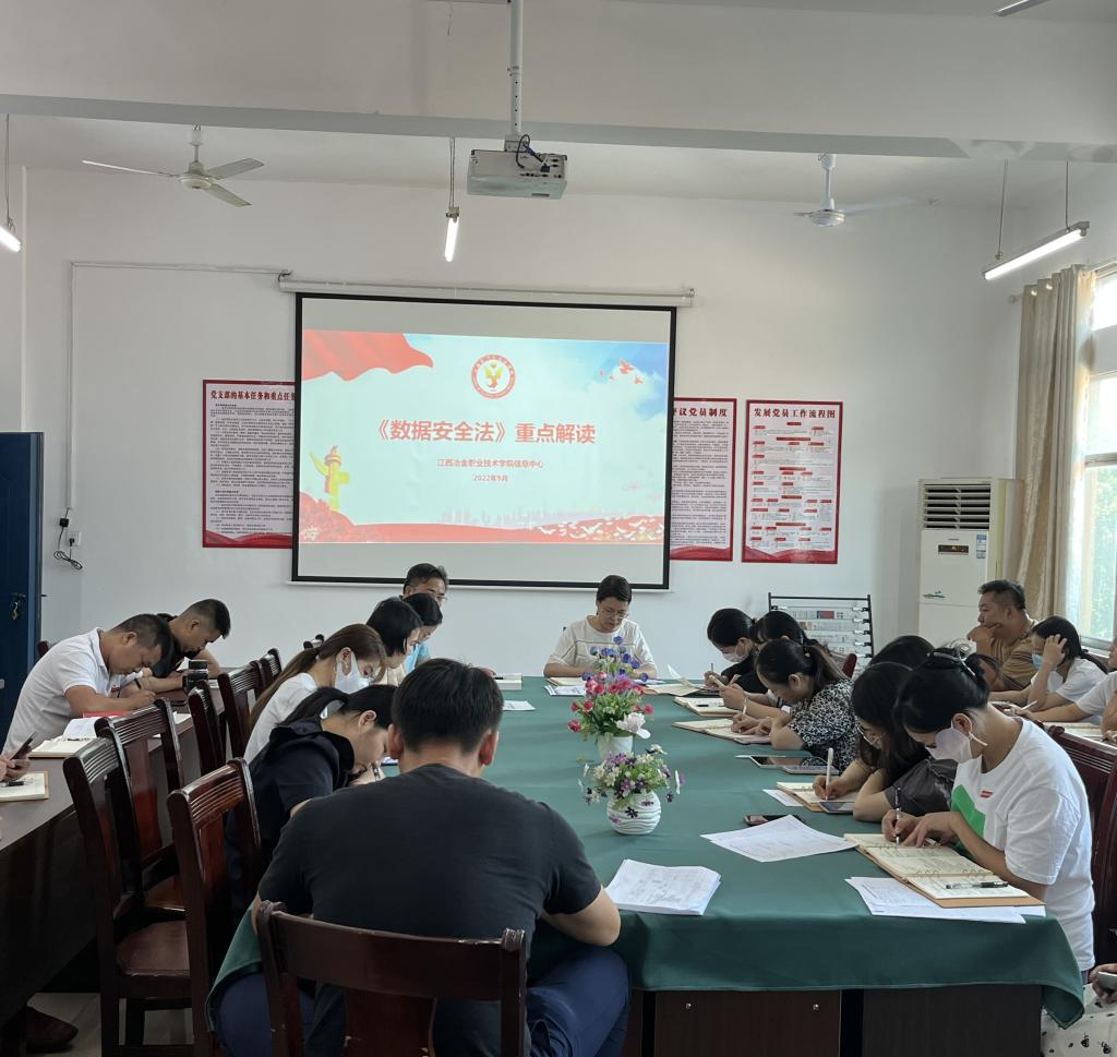 会议第二项。由周佳雪老师组织大家学习了《数据安全法》和《习近平谈治国理政》第四卷中《关于<中共中央关于党的百年奋斗重大成就和历史经验的决议>的说明》。周老师指出,数据安全法对数据的开放和共享,不仅仅是单纯的约束和要求,而是从法律角度对数据共享、数据交换、数据管理提供规范化的理论支撑。作为教育工作者,必须深刻认识数据安全的重要性,牢固树立数据安全意识,严格执行数据安全法规。