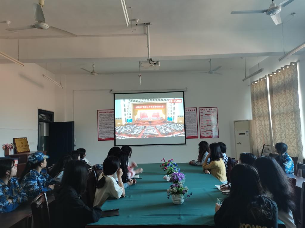 党的二十大报告全面、系统、深入总结了在以习近平同志为核心的党中央坚强领导下,在习近平新时代中国特色社会主义思想的指引下,党和国家各项事业取得的举世瞩目的重大成就。同学们仔细聆听习近平总书记所作的报告,认真记录,深受鼓舞,不时爆发出热烈的掌声。