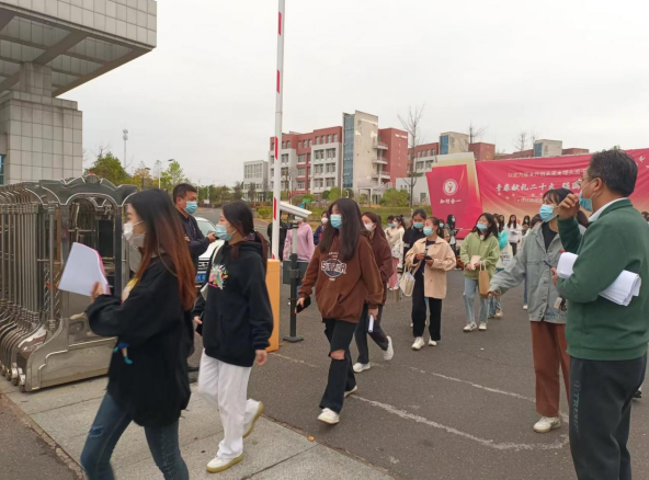 “我们老师点名很仔细,确保不落下一名同学,全程护送同学们到考场,考试结束,再把学生们平安地接回来。疫情没有打乱我们生活的节奏。”参加接送的现代服务学院老师王琦说。