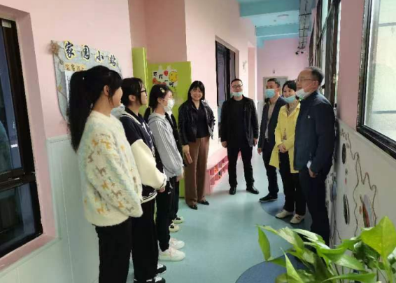 潘山一行深入幼儿园及学生宿舍各个岗位,与同学们亲切交流,询问她们的工作、生活情况、食宿问题和实习感受,鼓励她们珍惜实习机会,提高专业技能,并着重强调了安全问题。