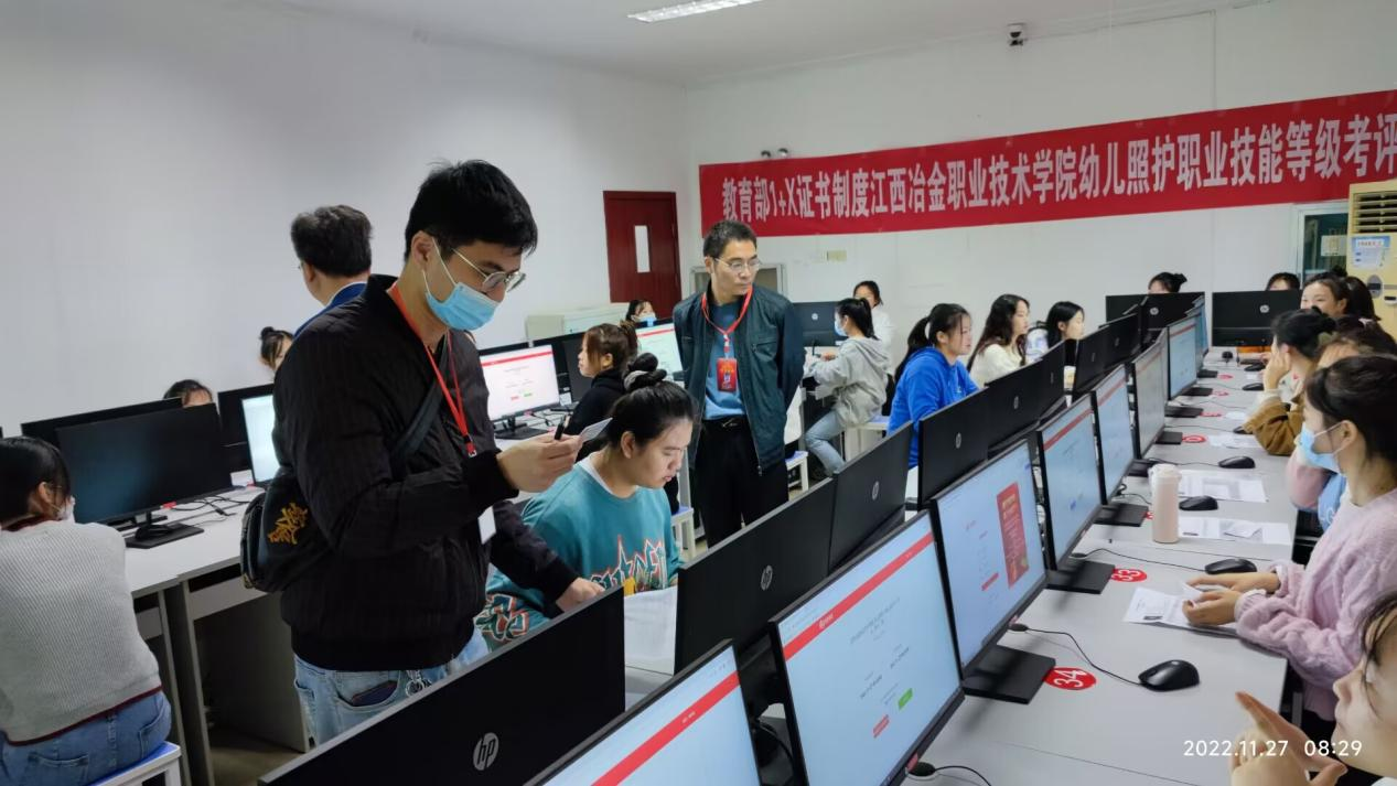 【现代服务学院吴金花报道】11月27日,学院举办了1+x幼儿照护职业技能等级证书考试。考试分理论考试和实操考试两部分,分别在图书馆四楼和北校区三教一楼举行。2021级幼儿保育专业和2021级婴幼儿托育服务与管理专业共120名同学参加考证。