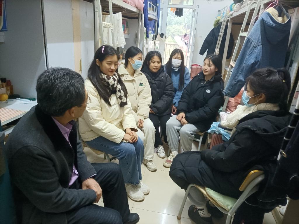 【现代服务学院周明霞报道】12月5日下午,学院党委委员、副院长谢翀来到新五栋学生宿舍,与挂点宿舍同学们零距离交流,深入了解学生的学习和生活情况。