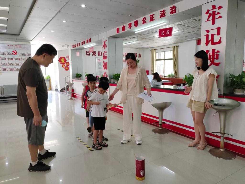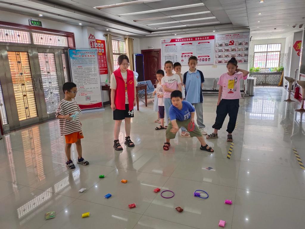在爱心陪伴过程中,廖雨薇同学不仅为孩子们讲解了暑期防溺水相关知识,为孩子们开展爱心辅导、绘画手工等课堂活动,同时为锻炼孩子们的手眼协调能力,组织开展了“投壶”“套圈”等趣味游戏。