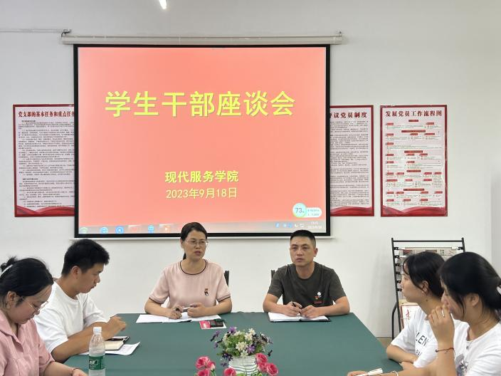 【现代服务学院周明霞报道】9月18日,现代服务学院召开学生干部座谈会,听取学生干部建议,探讨提升分院学生管理工作的路径方法。
