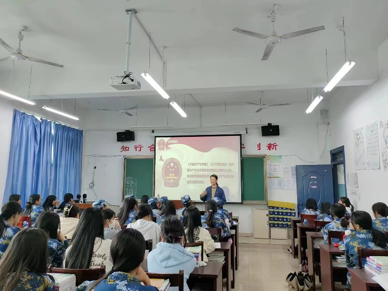 欧阳小缨从“什么是《党章》、为什么要学习《党章》、如何学习《党章》”等三个角度进行了阐释和解读,并要求同学们,在日常生活学习中要加强党史和党建理论学习,树立正确的世界观、人生观、价值观。