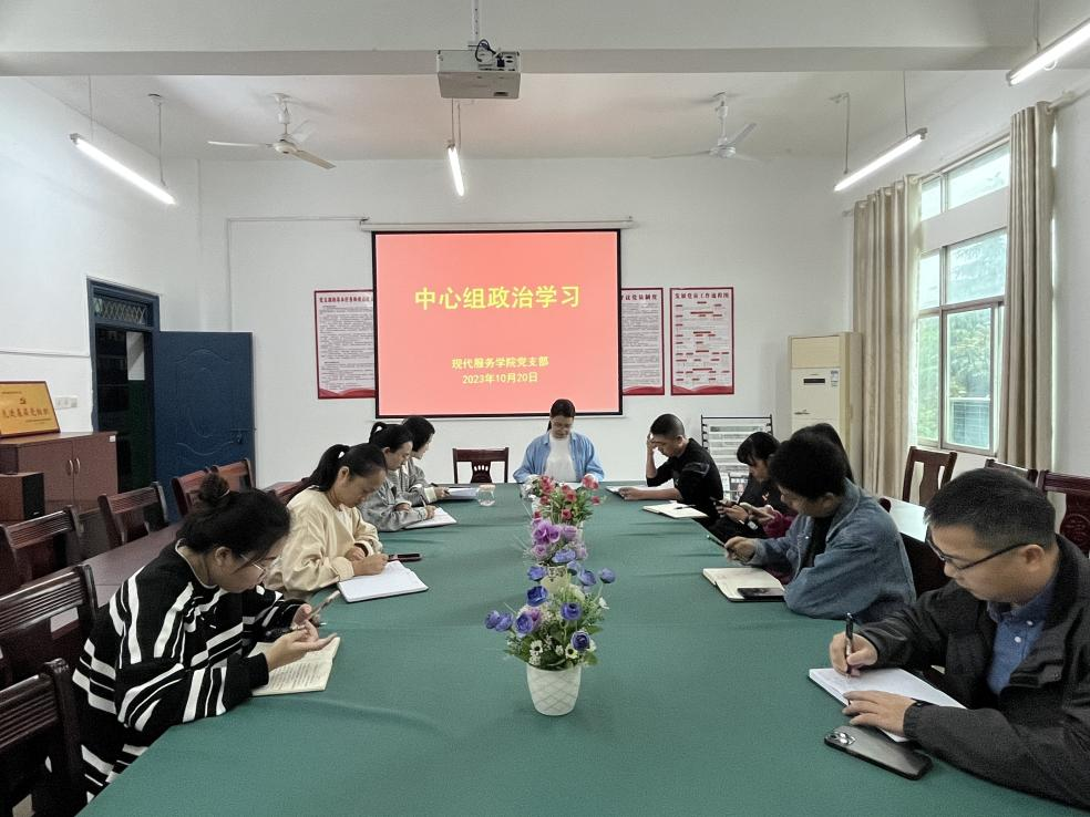 【现代服务学院周明霞报道】为进一步加强基层党组织的战斗堡垒作用,10月20日,现代服务学院党支部开展了支委委员中心组政治学习活动。会议由党支部书记欧阳小缨主持,副院长江敏、胡小平以及支委委员参加。