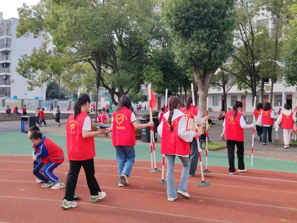 在随后的比赛活动中,志愿者们一直坚守在各自的岗位上,尽心尽力地保障运动会的进行。整个活动从下午1:30点开始,一直到下午4点结束,尽管烈日当头,志愿者们在组织工作中喊得口干舌燥,没有一个人提前撤离,最后还将活动中产生的垃圾都清理干净,得到了河下小学老师的一致好评。