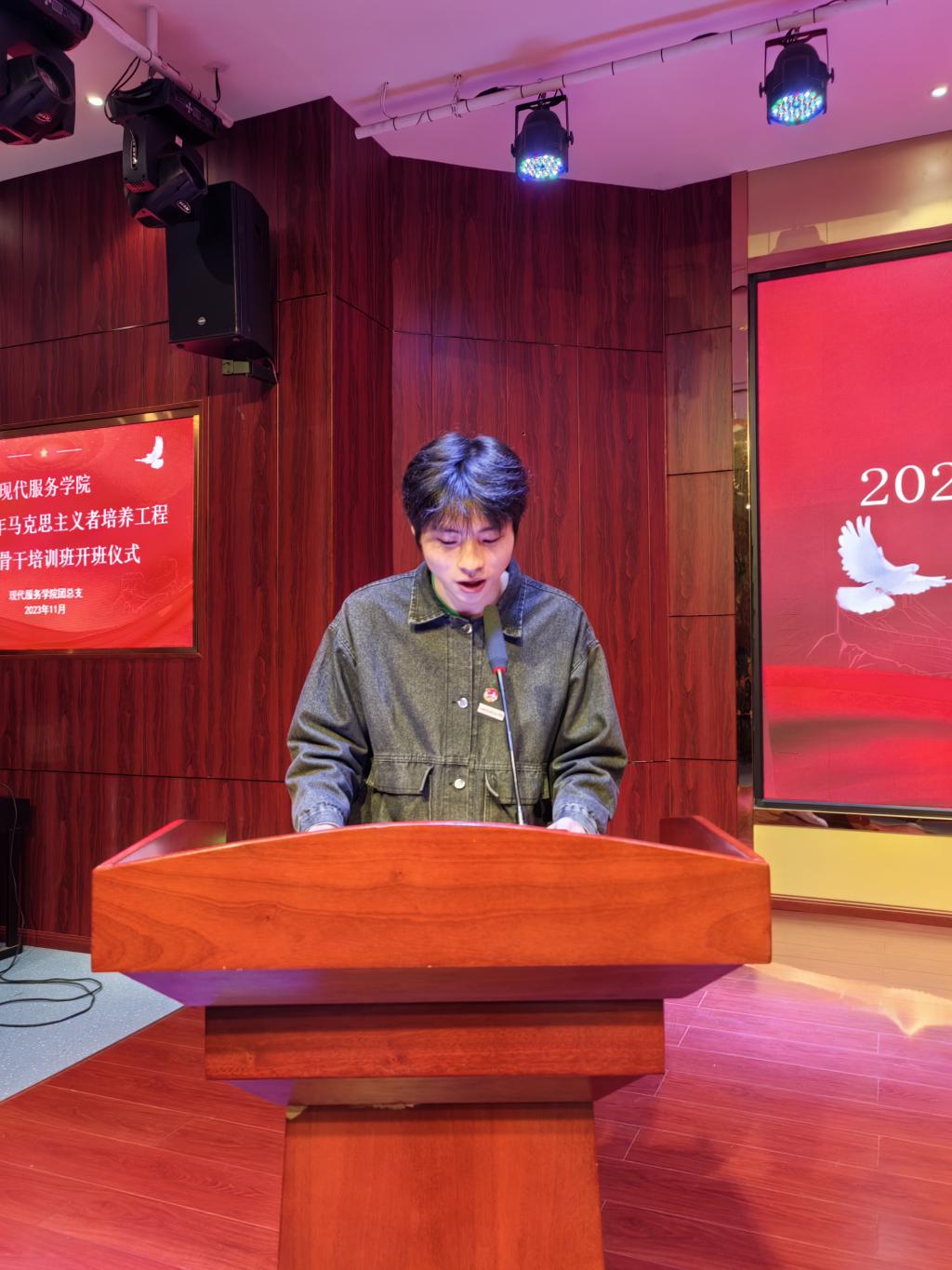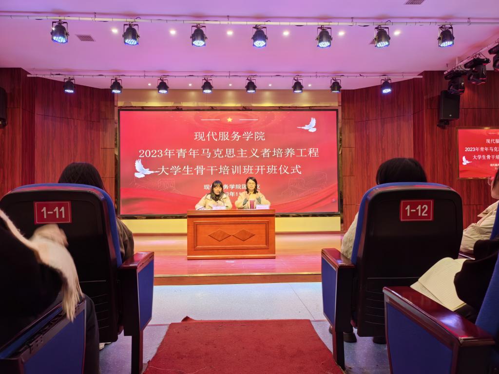 【现代服务学院徐卉报道】11月18日,现代服务学院“青马工程”大学生骨干培训班开班仪式在图书馆报告大厅举行。分院党支部书记欧阳小缨出席,团总支书记徐卉主持,青马班全体学员参加。