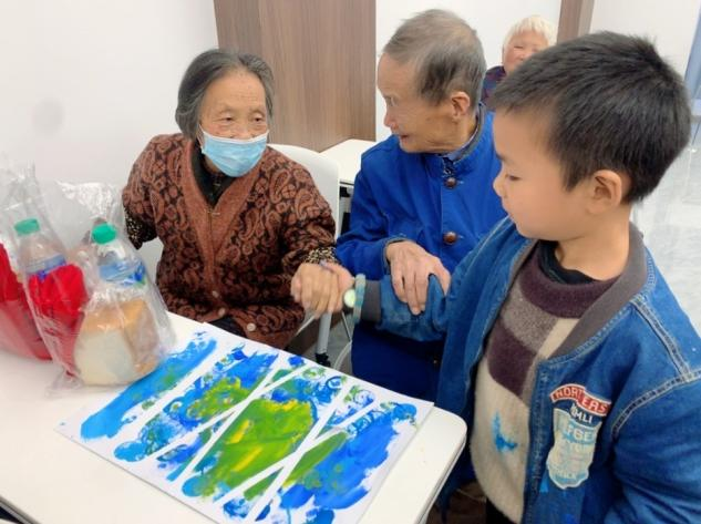 在美术课中,志愿者指导小朋友们自由发挥,在一张张画纸上涂涂画画,画纸上留下的不只是颜料,还有他们的难忘回忆。绘画完成后,小朋友们把自己的作品送给老人并送上了真挚的祝福,老人们纷纷表示:这个冬天,心很暖。