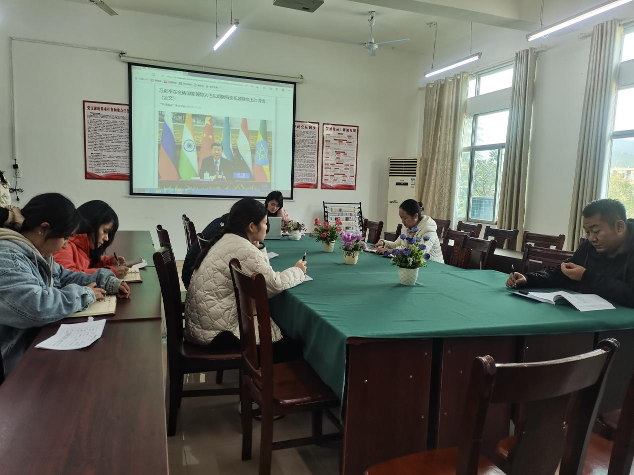 会议开始,江敏组织全体党员学习《习近平在金砖国家领导人巴以问题特别视频峰会上的讲话》、《习近平著作选读》第二卷等材料。会议讨论了是否吸收吴子晴、习增敏、文恋、程佳怡同志为预备党员问题。会议严格遵守党员的发展规范,流程依次进行。四位发展对象宣读了自己的《入党志愿书》以及汇报对党的认识、入党动机、本人履历、现实表现以及向组织说明的其它问题。